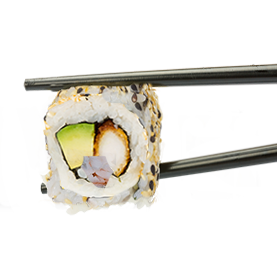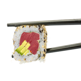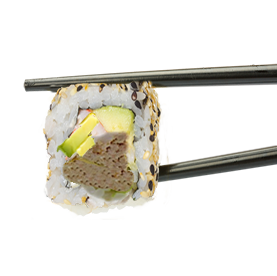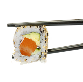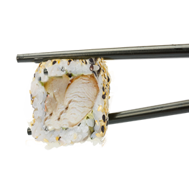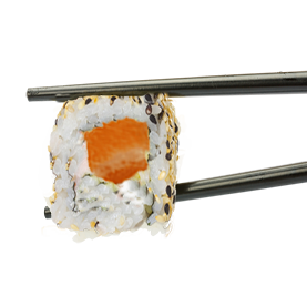 Rouleau de riz inversé garnis avec des graines de sésame.