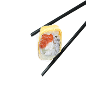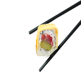 Riz et poisson enroulés dans une fine feuille d'omelette.