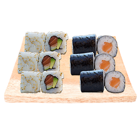 6 California saumon avocat, 6 sushi saumon + Wasabi, gingembre + 1 Entrée au choix + 1 Boisson 33cl au choix.