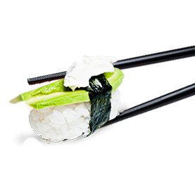 Canapé de riz vinaigré recouvert d'une fine tranche d'avocat frais.